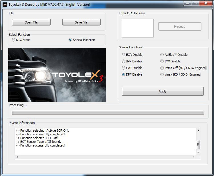 • Diesel Particulate Filter [DPF] disable function for all Denso Generations ECUs.