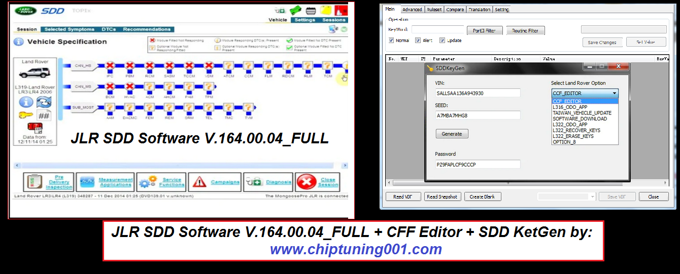 JLR SDD Software V 164.00.002 Full + SDD Seed Key Calc + CFF_Editor - OBDbytes for Car Chip Tuning