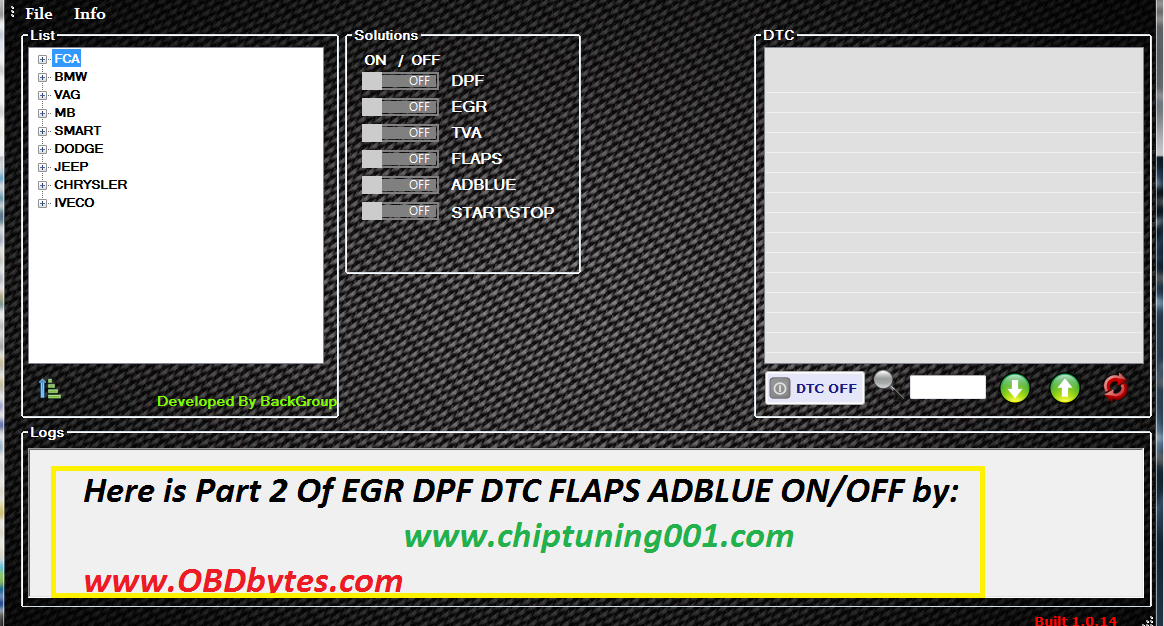 DPF EGR DTC ADBLUE FLAPS ON/OFF Software