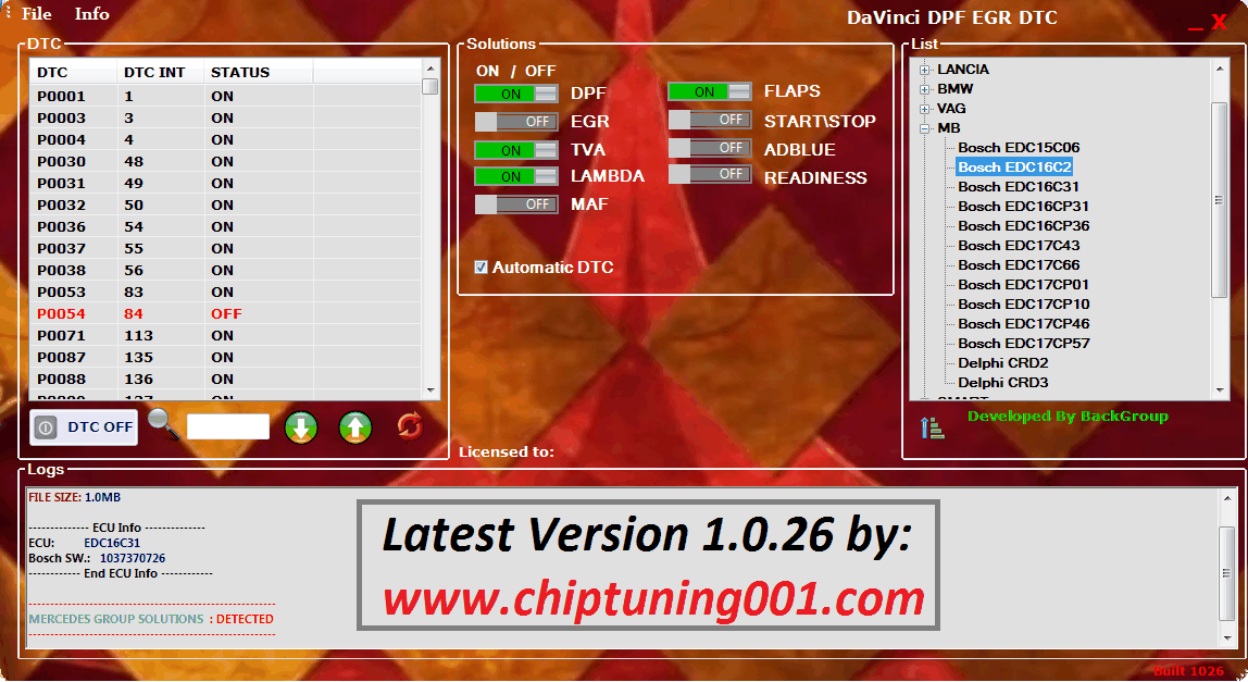- Latest Software Davinci for DPF EGR DTC ADBLUE ON-OFF